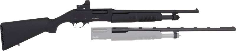 Introducing the Akkar Churchill 620 Combo – a versatile pump shotgun designed for enthusiasts and professionals alike. This combo features a 20 Gauge with a 3″ chamber, offering two barrels: an 18.5″ barrel equipped with a ramp front sight and a cylinder fixed choke, and a 26″ vent rib barrel complete with a fiber optic bead and options for improved cylinder, modified, or full chokes. This setup is paired with a sleek black finish and a reliable red dot sight, making it perfect for various shooting applications. The kit holds 4 rounds, making it an excellent choice for both target shooting and hunting. Elevate your shooting experience with the Akkar Churchill 620 Combo!