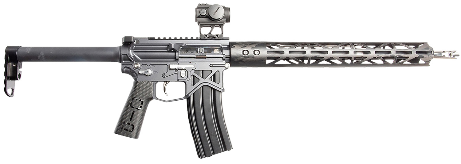 In Gen 3, it features a user-configurable M-LOK carbon fiber handguard and a carbon-fiber pistol grip that weighs barely one ounce. The design includes a titanium billet CNC machined bolt catch, a rack charging handle, and a Picatinny rail. The lightweight 7075-T6 billet aluminum receivers are not simply skeletonized and hollowed out but are carefully engineered with structural consideration. Upgrade your shooting experience with this advanced carbine!