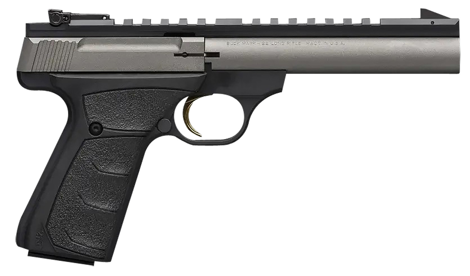 Browning 051586490 Buck Mark Field/Target 22 LR 10+1 5.50″ Tungsten Gray Cerakote Steel Bull Barrel & Serrated Steel w/Picatinny Rail Slide, Matte Black Alloy Receiver Black Polymer Grips