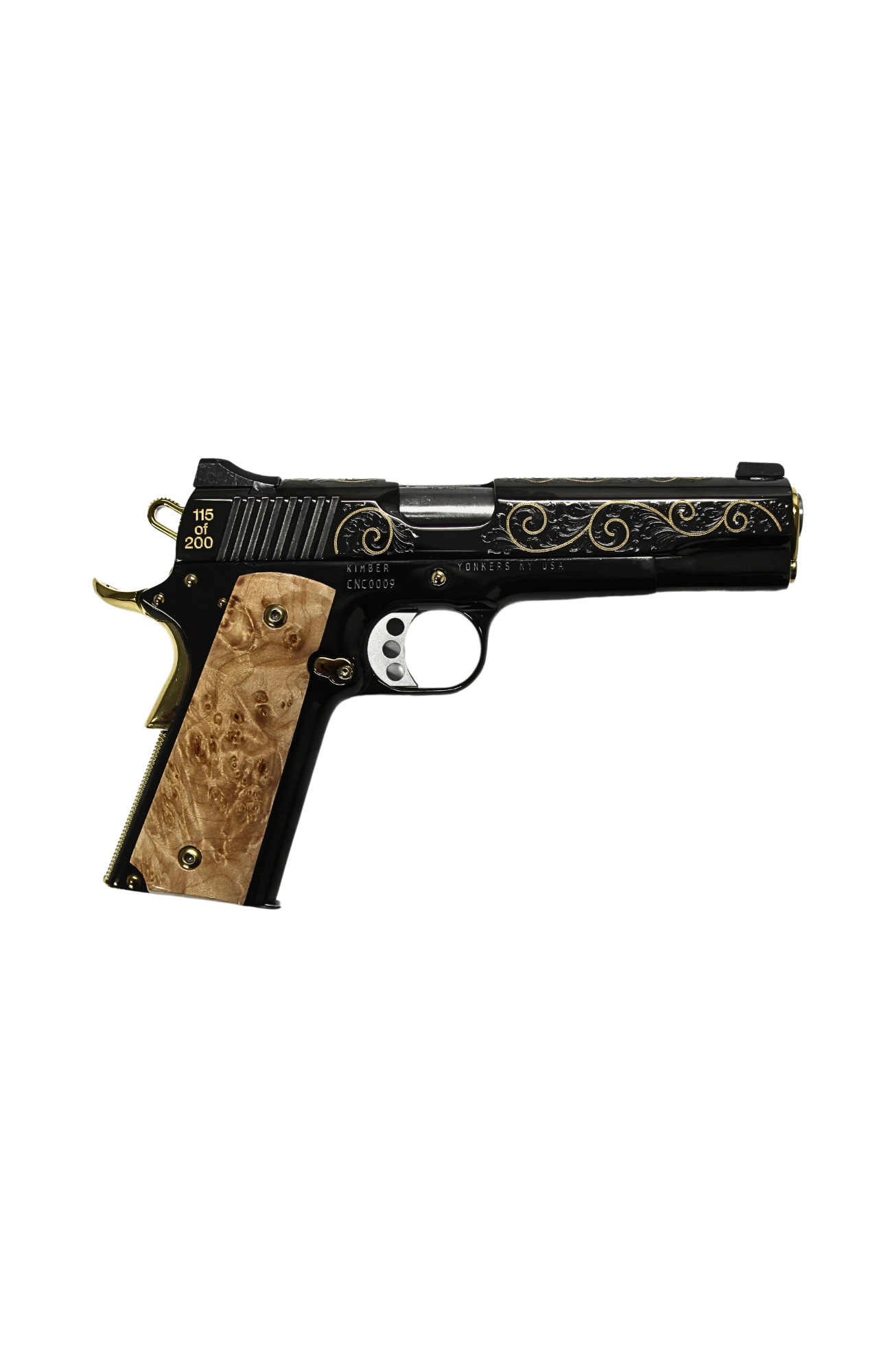 KIMBER CUSTOM 1911 45ACP BLACK DELUXE, SCROLL WORK, GOLD ROPE INLAY 1-200 MADE