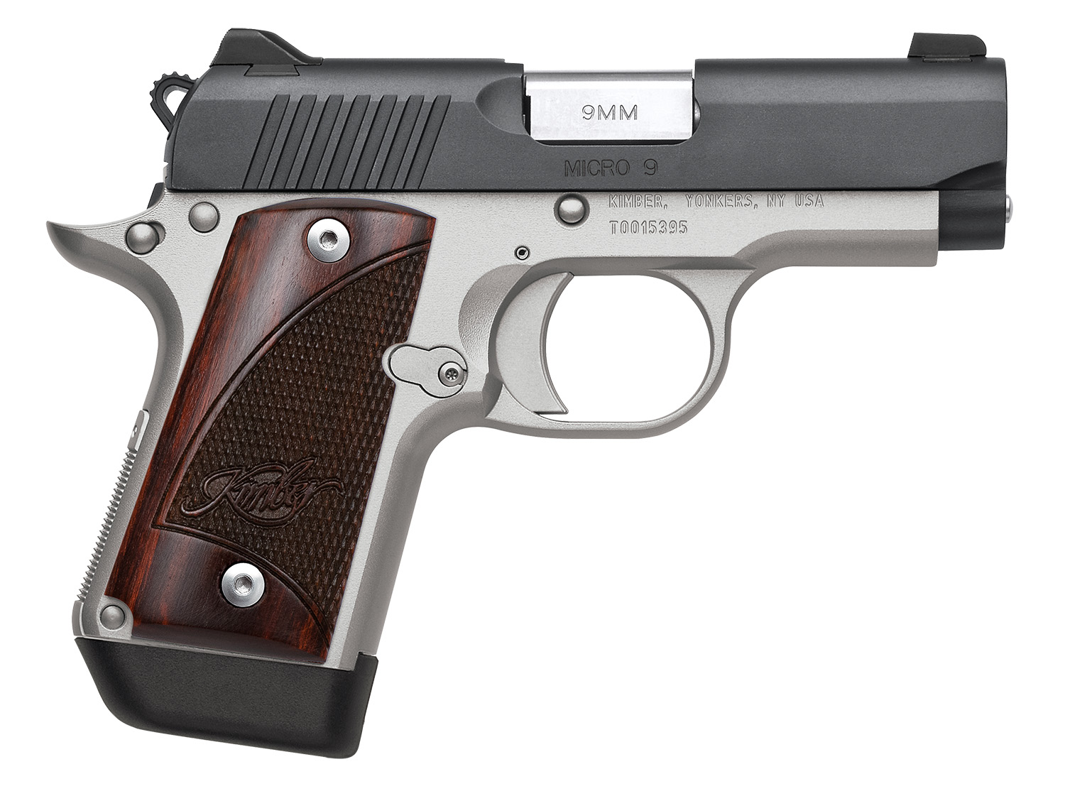 Kimber Mfg, Inc 3300099 Micro 9 Two-Tone Micro Frame 9mm Luger 7+1 3.15″ Stainless Match Grade Barrel, Matte Black Serrated Steel Slide, Satin Silver Aluminum Frame w/Beavertail, Rosewood Grip