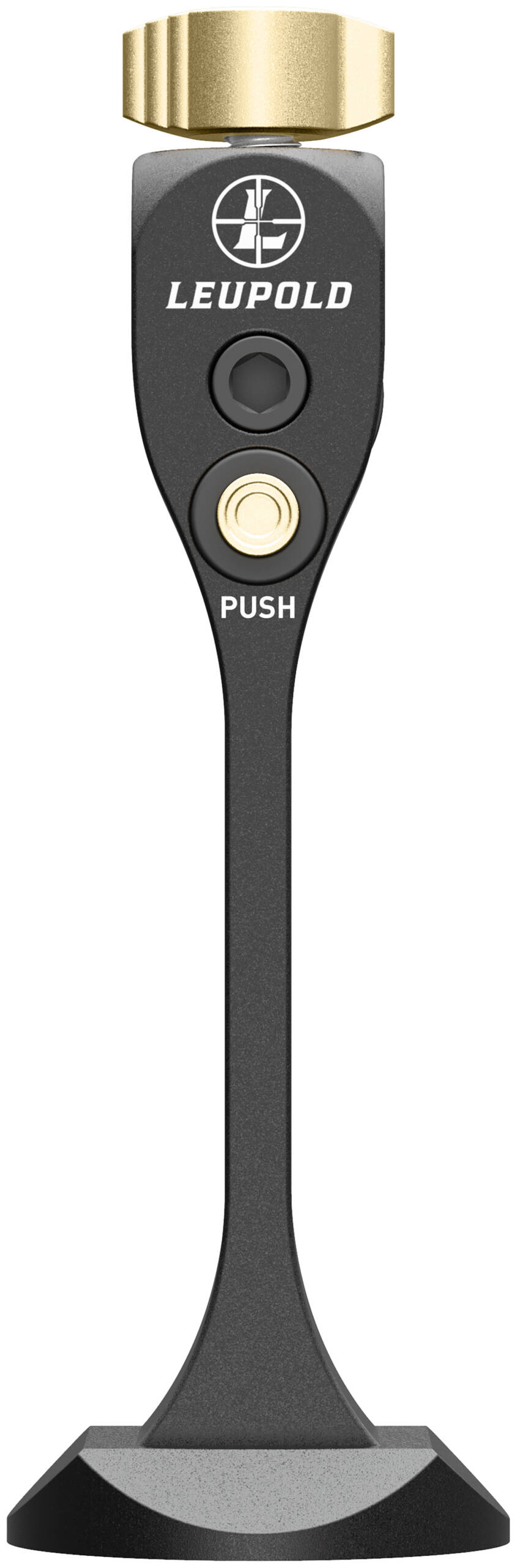 Packing binoculars instead of a spotting scope can shave pounds off your kit, helping you crest more ridges without sapping your energy. And now, you can avoid the shakiness of free-hand glassing by quickly and easily locking down your bino’s to your tripod. Upgrade your loadout with the Quick Stem binocular tripod adapter, and finally, see what you’ve been missing. The Quick Stems Arca-Swiss compatible base secures your binoculars to any Leupold tripod, while its quick-release button detaches them for safe storage once you’re ready to move. Made from tough and dependable aircraft-grade aluminum, this adapter will easily handle the abuse of tracking animals over rugged terrain.