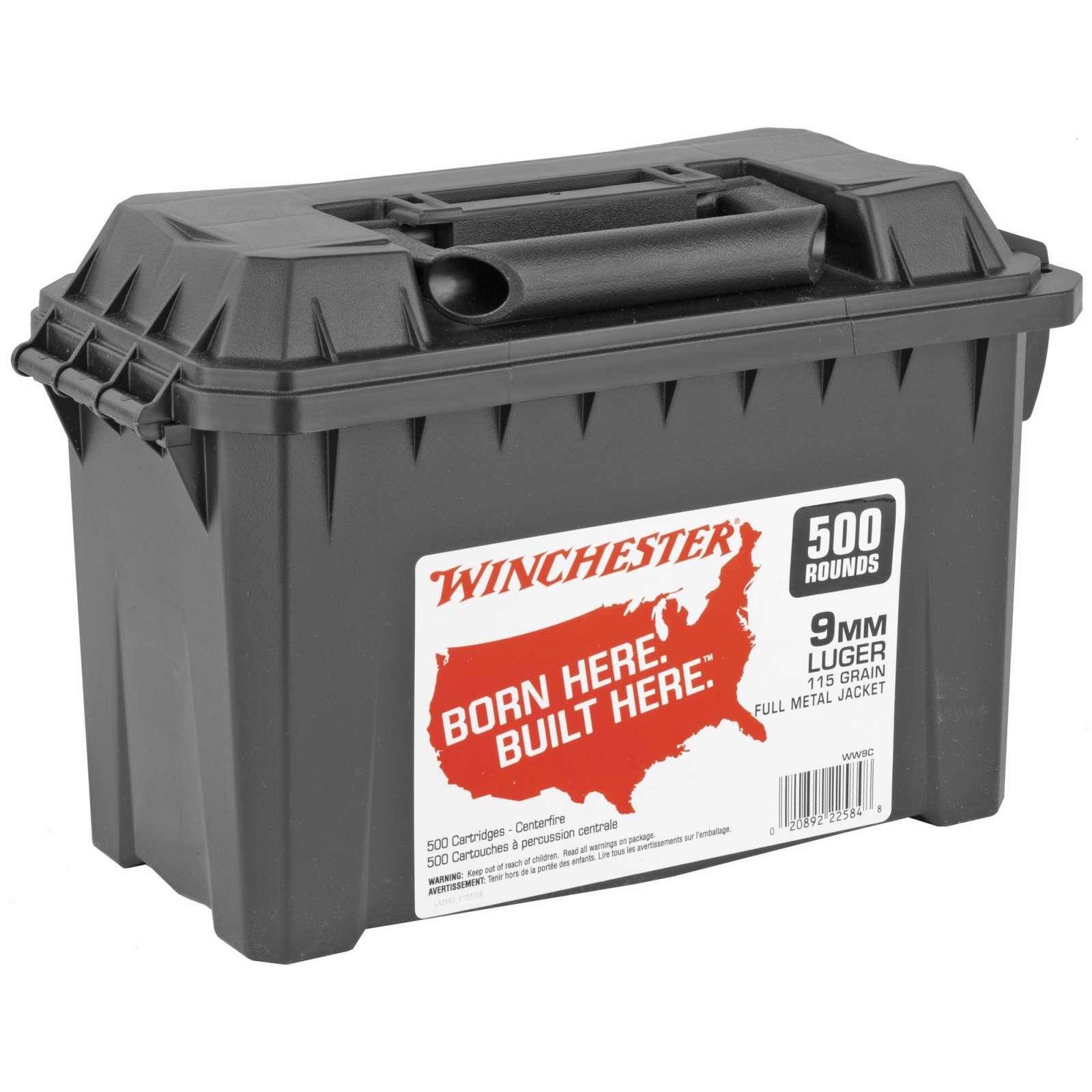 WINCHESTER 9 MM USA BHBH 115 GR AMMO CAN 500 RD/BX 2 BX/CS